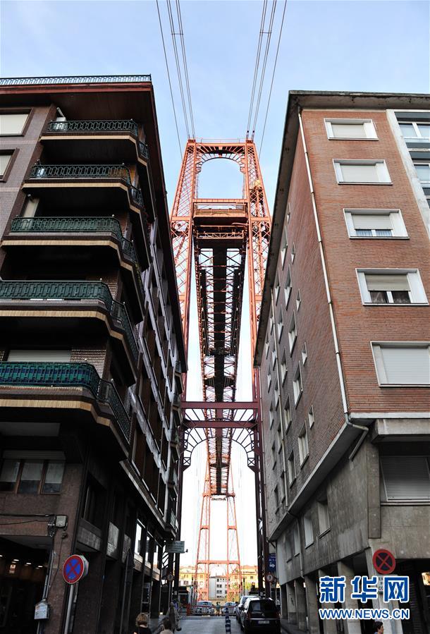 这是8月22日在西班牙比斯开省内维翁河畔拍摄的比斯开桥。新华社记者 郭求达 摄