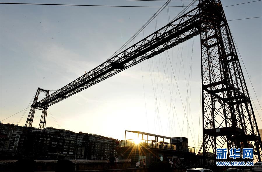 这是8月22日在西班牙比斯开省内维翁河畔拍摄的比斯开桥。 新华社记者 郭求达 摄