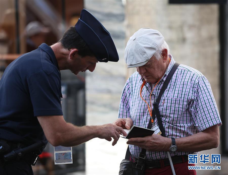 8月23日,在法国比亚里茨,警察检查出入安保区域人员的证件。