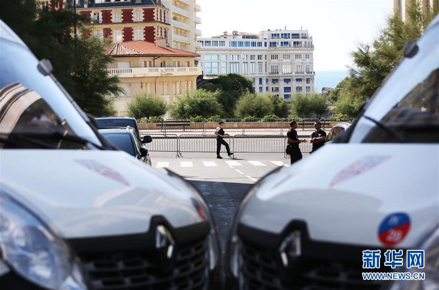 8月23日,在法国比亚里茨,警察在街上执勤。新华社记者高静摄