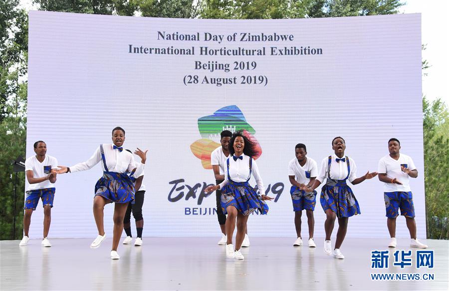 8月28日,演员在“津巴布韦国家日”活动中进行文艺表演。 当日,2019年中国北京世界园艺博览会“津巴布韦国家日”活动在北京世园会园区举行。 新华社发(任超 摄)