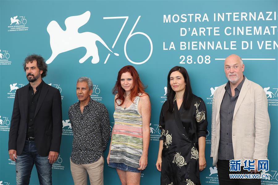 8月28日,在意大利威尼斯,第76届威尼斯电影节地平线单元的评委出席拍照式。 第76届威尼斯电影节于8月28日至9月7日在意大利水城威尼斯举行。 新华社记者 程婷婷 摄