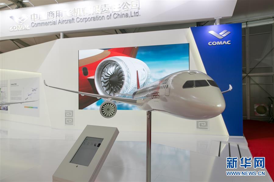 8月27日,在俄罗斯莫斯科附近的茹科夫斯基市,CR929远程宽体客机模型亮相莫斯科航展。新华社记者 白雪骐 摄