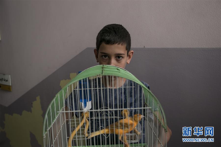 8月28日,在利比亚首都的黎波里一栋废弃楼房中,艾哈迈德拿着一个鸟笼。新华社发(阿姆鲁摄)