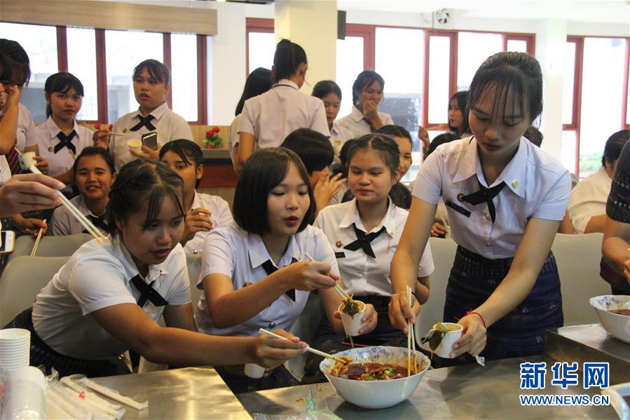 8月30日,在泰国孔敬大学孔子学院,学生品尝水煮肉片。 位于泰国东北部的孔敬大学孔子学院当日在孔敬大学举办第三届“中国厨房”美食文化节,邀请中国厨师和学生现场制作川菜并开设川菜课堂。 新华社记者 杨舟 摄