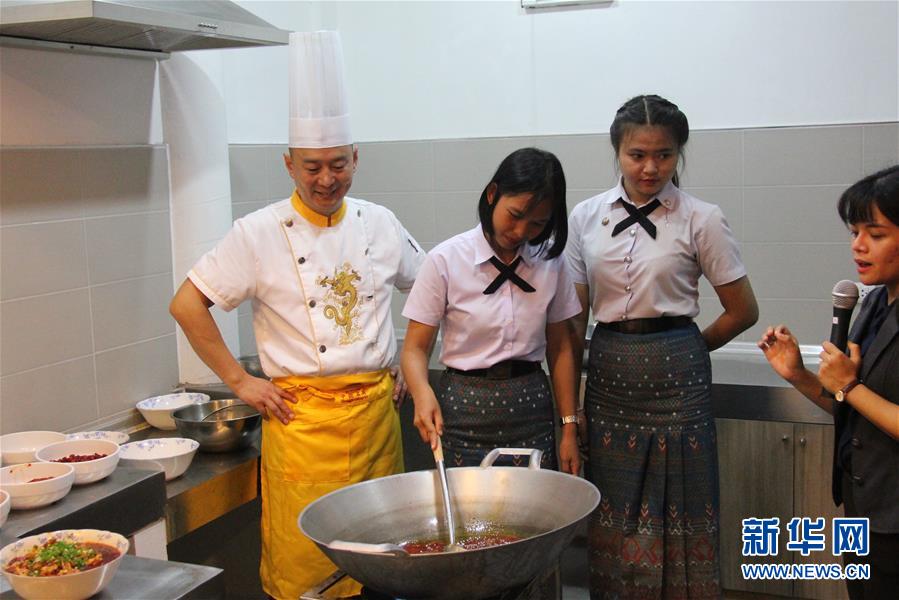 8月30日,在泰国孔敬,西南大学的厨师在孔敬大学孔子学院的厨房内教泰国学生制作水煮肉片。 位于泰国东北部的孔敬大学孔子学院当日在孔敬大学举办第三届“中国厨房”美食文化节,邀请中国厨师和学生现场制作川菜并开设川菜课堂。 新华社记者 杨舟 摄