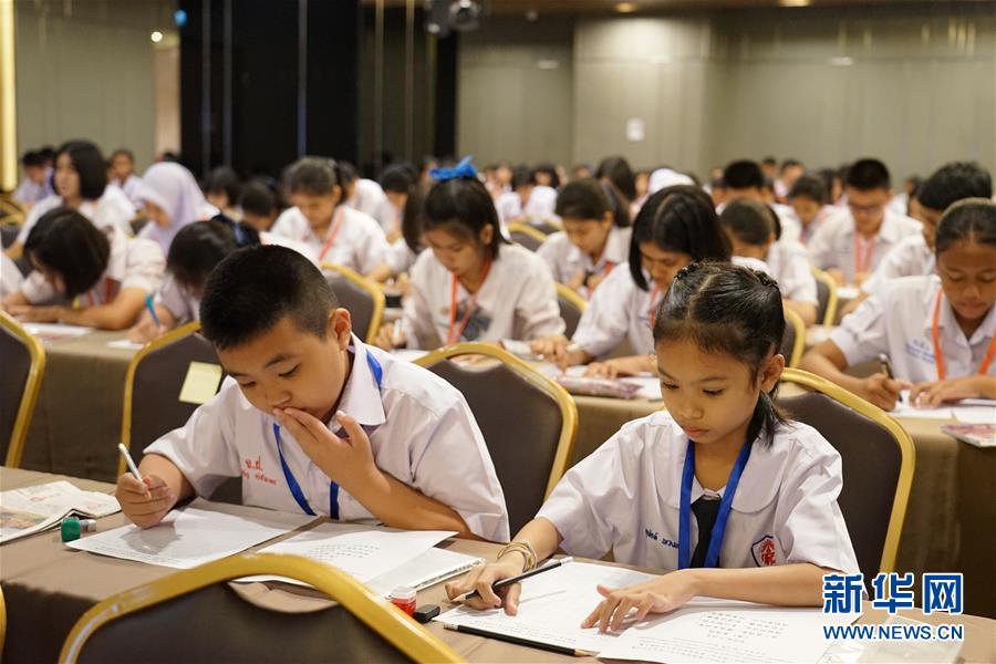 9月1日,在泰国宋卡府合艾市,泰国学生参加中文书写比赛。 2019年中泰一家亲“友谊杯”泰国南部大中小学生中文比赛决赛9月1日下午在宋卡府合艾市举行。经过角逐,有4名学生获得前往中国交流学习的机会。 新华社发