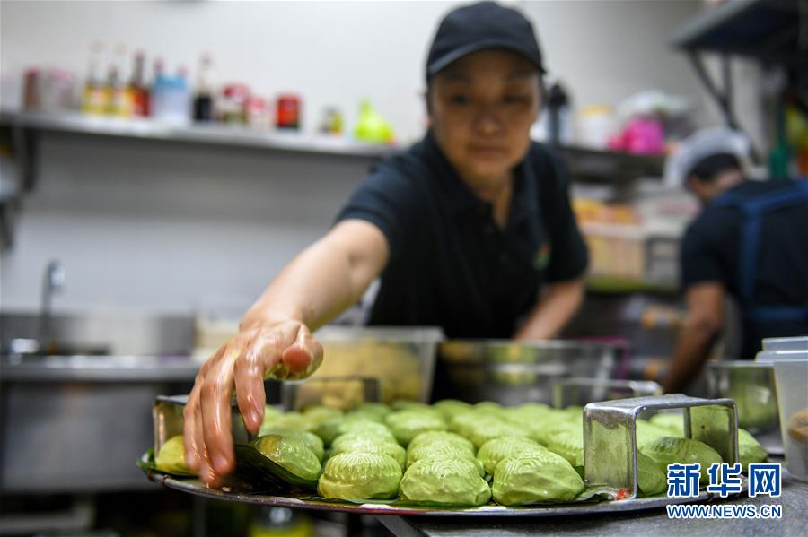 9月1日,在马来西亚吉隆坡,郑桂玲在自己的餐厅内制作娘惹糕。 9月13日,中国将迎来传统佳节——中秋节。月饼作为中秋节的传统糕点,久负盛名,备受人们喜爱。那么世界上的其他地区是否也有自己独特的传统糕点,让人食之难忘呢?答案是肯定的。 在马来西亚,早期的中国移民与当地人的后代被称为峇峇娘惹,男性称峇峇,女性叫娘惹,是东南亚土生华人族群。峇峇娘惹保留了中华传统习俗,同时也吸收了当地马来人的文化,他们的美食同样兼具了中马两国的特色,娘惹糕是其中的代表之一。娘惹糕由糯米、椰浆、香料等原料制成,口感软糯,种类及口味繁多。糕点取用蝶豆花、班兰叶等植物的汁液上色,形成艳丽的色彩,是备受当地人欢迎的美食。 新华社发(张纹综摄)