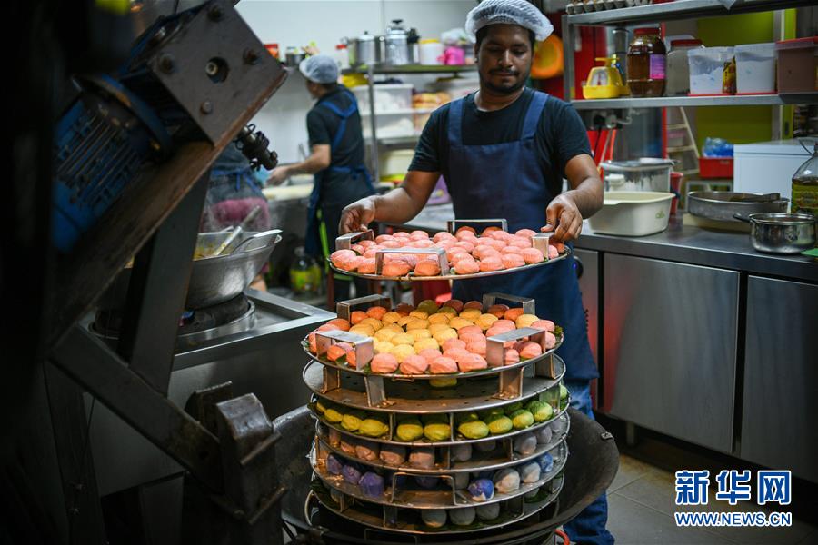 9月1日,在马来西亚吉隆坡,郑桂玲店里的伙计将娘惹糕放上蒸锅。 9月13日,中国将迎来传统佳节——中秋节。月饼作为中秋节的传统糕点,久负盛名,备受人们喜爱。那么世界上的其他地区是否也有自己独特的传统糕点,让人食之难忘呢?答案是肯定的。 在马来西亚,早期的中国移民与当地人的后代被称为峇峇娘惹,男性称峇峇,女性叫娘惹,是东南亚土生华人族群。峇峇娘惹保留了中华传统习俗,同时也吸收了当地马来人的文化,他们的美食同样兼具了中马两国的特色,娘惹糕是其中的代表之一。娘惹糕由糯米、椰浆、香料等原料制成,口感软糯,种类及口味繁多。糕点取用蝶豆花、班兰叶等植物的汁液上色,形成艳丽的色彩,是备受当地人欢迎的美食。 新华社发(张纹综摄)