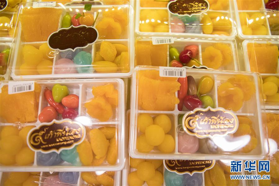 这是9月1日在泰国曼谷著名的“九姐妹甜点”店拍摄的泰国蛋黄花、蛋黄球和甜蛋丝等传统甜点。新华社记者 张可任 摄
