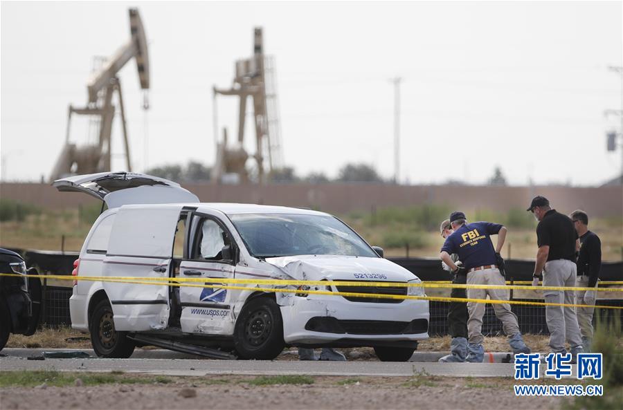 9月1日,在美国得克萨斯州敖德萨市,调查人员查看枪手使用的车辆。 美国得克萨斯州敖德萨市政府1日表示,8月31日该市发生的枪击事件中平民遇难者人数上升至7人。 新华社/美联