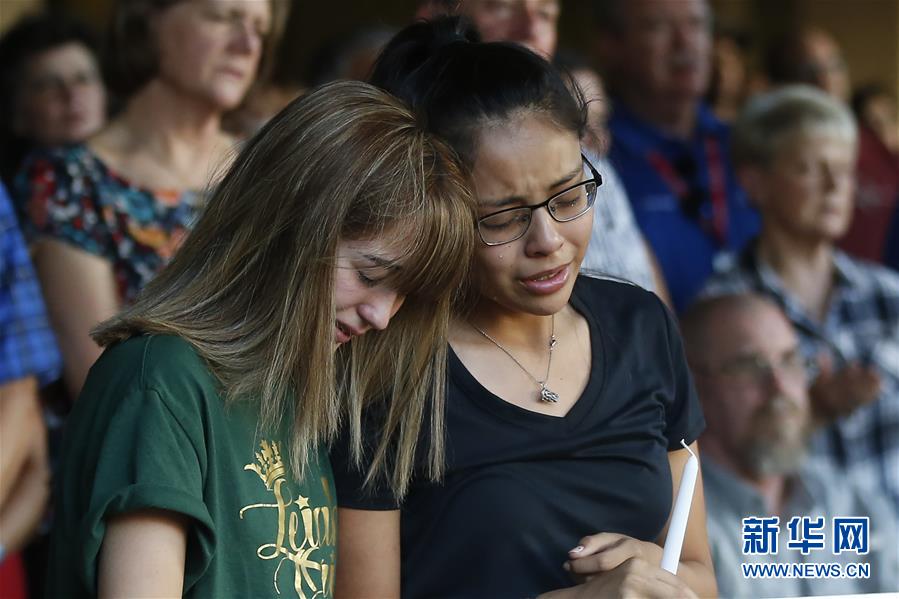 9月1日,在美国得克萨斯州敖德萨市,两名少女悼念她们在枪击事件中丧生的朋友。 美国得克萨斯州敖德萨市政府1日表示,8月31日该市发生的枪击事件中平民遇难者人数上升至7人。 新华社/美联