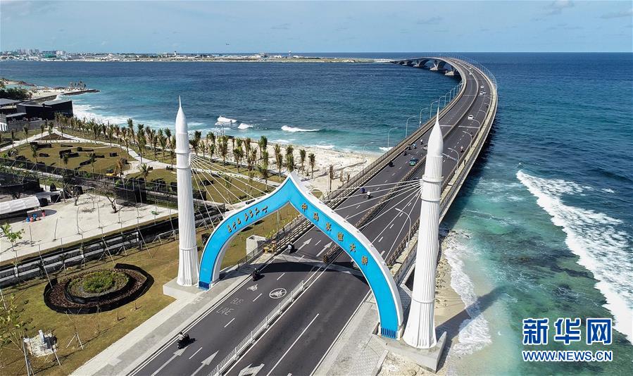 这是9月1日拍摄的马尔代夫中马友谊大桥(无人机拍摄)。 新华社发(王明亮摄)