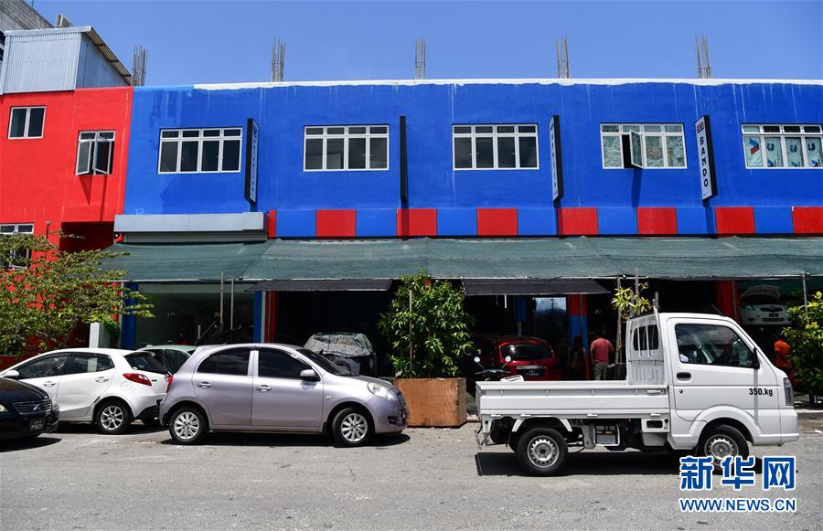 这是9月1日在马尔代夫胡鲁马累拍摄的一家汽车修理公司门店。汽修公司老板哈吉姆告诉记者,受交通条件限制,以前马尔代夫的汽车维修业并不发达,感谢中国修建的大桥带动了汽车产业链。 新华社发(杜才良摄)