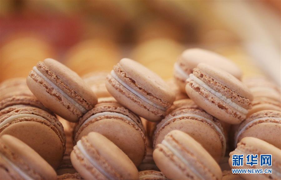 这是8月30日在法国巴黎香榭丽舍大街知名马卡龙品牌皮埃尔·埃尔姆门店拍摄的马卡龙。新华社记者 高静 摄