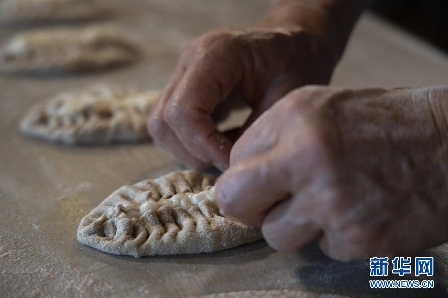 9月2日,在芬兰东部南卡累利阿地区的莱米市,面点师皮尔科·伦苏制作卡累利阿派。 新华社发(马蒂·马蒂凯宁摄)
