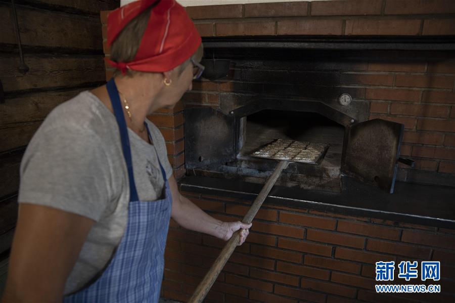 9月2日,在芬兰东部南卡累利阿地区的莱米市,面点师皮尔科·伦苏将捏好的卡累利阿派放入烤炉。新华社发(马蒂·马蒂凯宁摄)