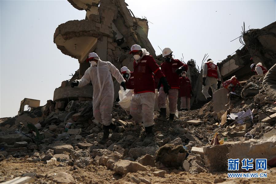 9月4日,在也门扎马尔省,救援人员转移空袭遇难者遗体。 也门西南部扎马尔省一所监狱1日凌晨遭到空袭,目前已有至少100人死亡,预计这一数字还会上升。 新华社发(穆罕默德摄)
