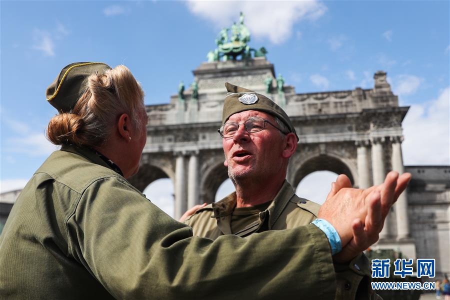 9月4日,在比利时布鲁塞尔,人们在庆祝比利时解放75周年活动上跳舞。 当天,布鲁塞尔举行活动,庆祝第二次世界大战盟军解放比利时75周年。 新华社记者 郑焕松 摄