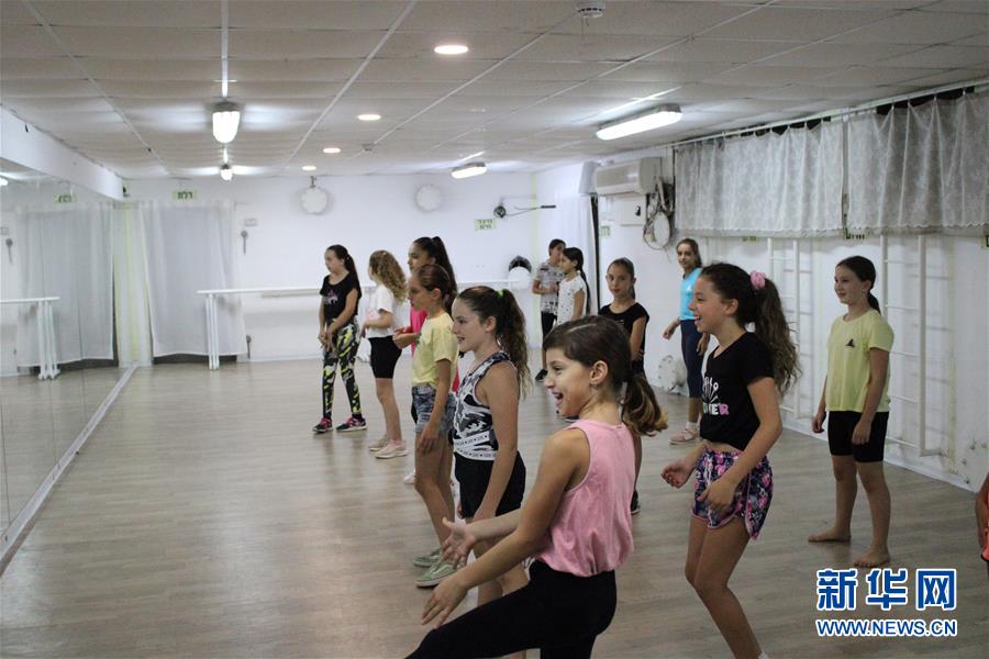 9月3日,孩子们在以色列伊龙基布兹防空洞内的舞蹈排练室学习舞蹈。新华社记者 尚昊 摄