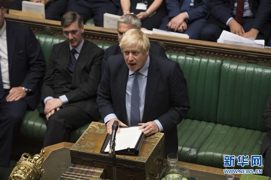 9月4日,在英国伦敦,英国首相约翰逊(前)在议会下院发言。 新华社发(英国议会摄影师杰西卡·泰勒摄)