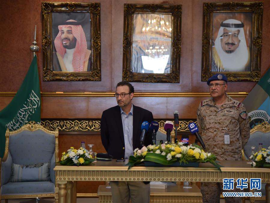 9月5日,在沙特首都利雅得,美国负责近东事务的助理国务卿戴维·申克尔(左)出席新闻发布会。新华社记者 涂一帆 摄