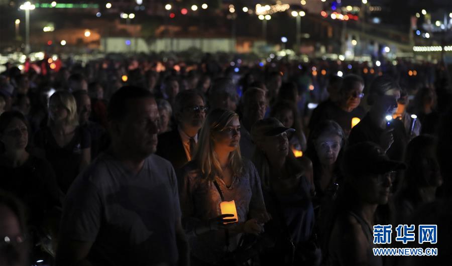 9月5日,在美国洛杉矶圣莫尼卡海滩,人们参加悼念活动。 美国加利福尼亚州圣巴巴拉县官员5日表示,美国加州游船失火事故已确认34人死亡。目前事故原因正在调查中。 新华社记者 李颖 摄