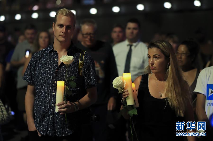 9月5日,在美国洛杉矶圣莫尼卡海滩,人们参加悼念活动。 美国加利福尼亚州圣巴巴拉县官员5日表示,美国加州游船失火事故已确认34人死亡。目前事故原因正在调查中。 新华社记者 李颖 摄