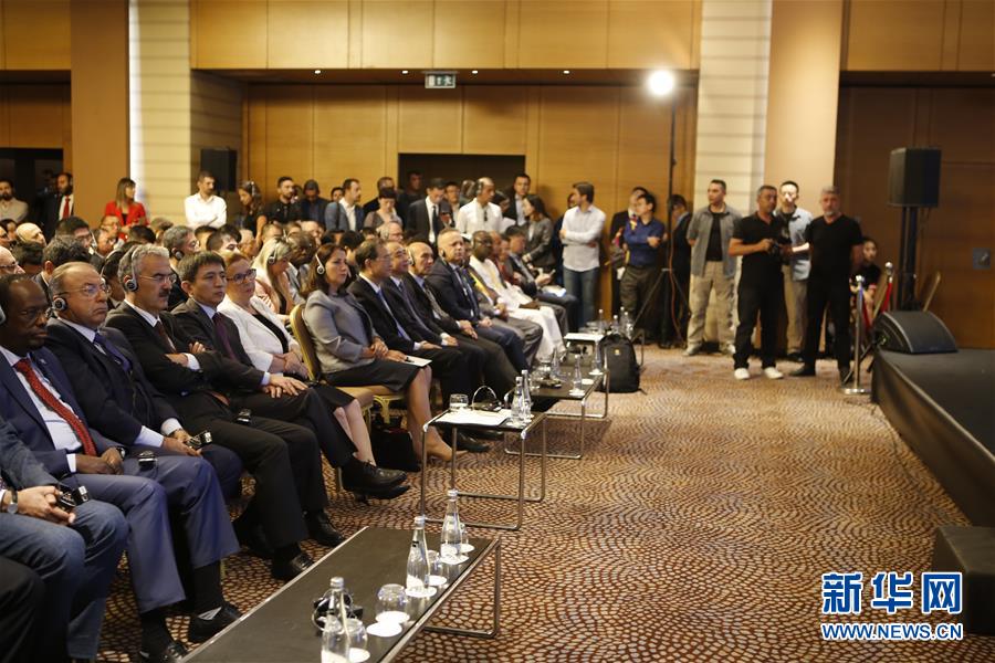 这是9月6日在土耳其伊兹密尔拍摄的中国-土耳其贸易投资论坛现场。 中国-土耳其贸易投资论坛6日在土耳其海滨城市伊兹密尔举行,与会嘉宾就推动两国经贸合作等议题展开讨论。来自土耳其贸易部、土耳其对外经济委员会、中国商务部、中国国际贸易促进委员会、中国驻土耳其大使馆及双方企业的代表出席论坛。 新华社记者 郑思远 摄