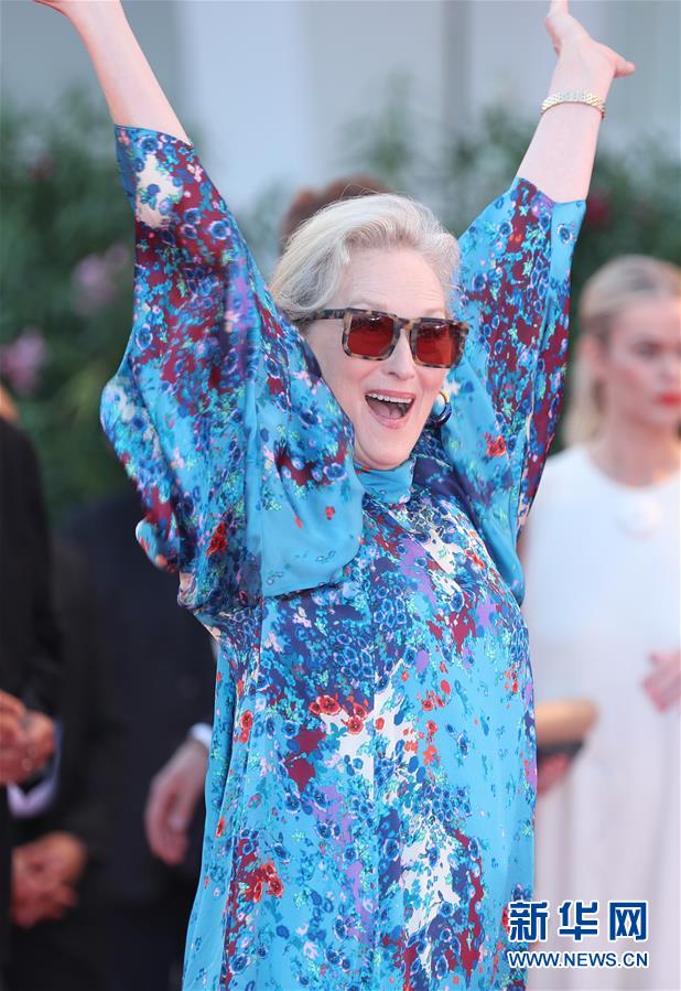 9月1日,在意大利威尼斯,演员梅丽尔·斯特里普亮相威尼斯电影节红毯仪式。 第76届威尼斯电影节于8月28日至9月7日在意大利威尼斯举行。威尼斯电影节竞赛单元和其他官方单元的影片在首映前都设有红毯仪式,众多嘉宾盛装亮相,“星光”璀璨。 新华社记者 程婷婷 摄