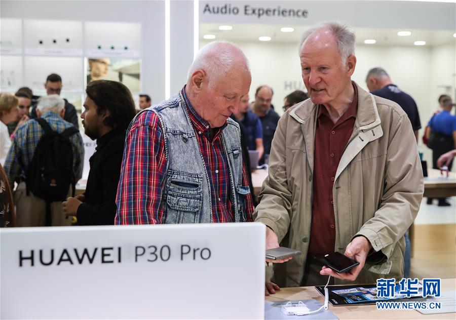 9月6日,在德国首都柏林举办的第59届柏林国际消费电子展上,两名参观者在华为公司展区体验P30 Pro系列手机。 中国家用电器创新成果推介活动6日亮相第59届柏林国际消费电子展,旨在以电子展为平台将更多中国家电创新成果推向世界舞台。第59届柏林国际消费电子展当天在柏林展览中心正式拉开帷幕,吸引了包括约770家中国企业在内的全球1939家展商参加。TCL、海尔、长虹、美的等中国知名家电品牌纷纷携最新产品和技术亮相电子展。 新华社记者单宇琦摄
