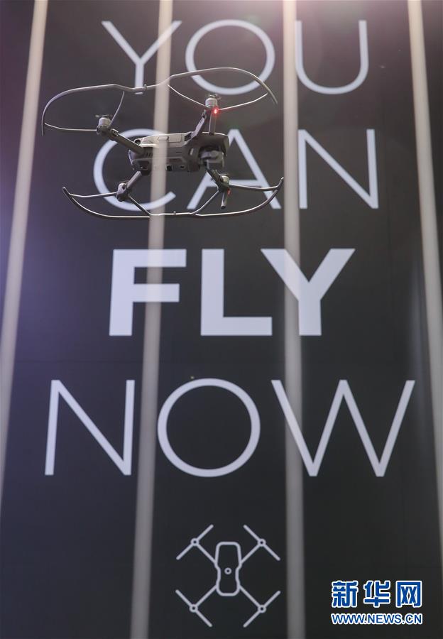 这是9月6日在德国首都柏林举办的第59届柏林国际消费电子展上拍摄的大疆公司展区的一架无人机。 中国家用电器创新成果推介活动6日亮相第59届柏林国际消费电子展,旨在以电子展为平台将更多中国家电创新成果推向世界舞台。第59届柏林国际消费电子展当天在柏林展览中心正式拉开帷幕,吸引了包括约770家中国企业在内的全球1939家展商参加。TCL、海尔、长虹、美的等中国知名家电品牌纷纷携最新产品和技术亮相电子展。 新华社记者单宇琦摄