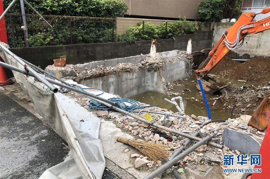 9月9日,在日本东京,一处建筑工地的围栏被吹倒。新华社记者 杜潇逸 摄