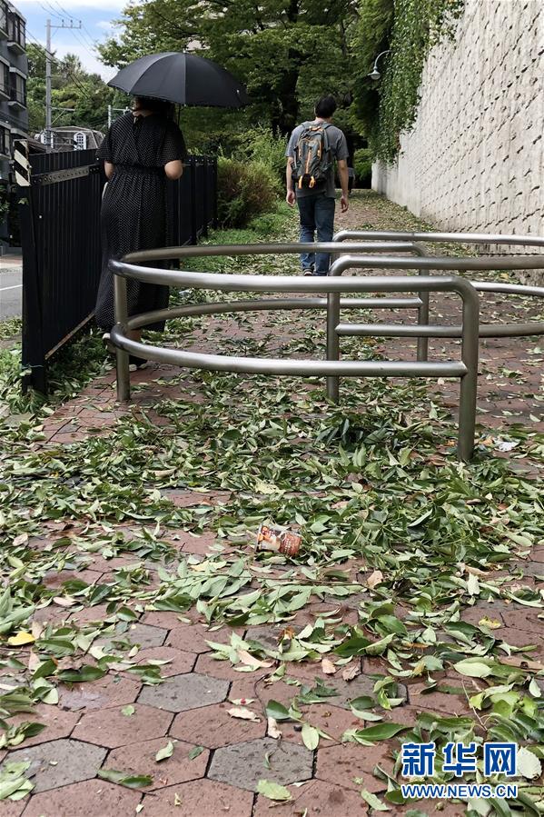 9月9日,在日本东京,行人走过积满落叶的街道。新华社记者 杜潇逸 摄