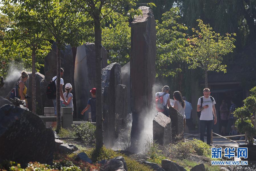 8月24日,在比利时布吕热莱特市,游客参观天堂动物园的“中国园”。新华社记者 郑焕松 摄