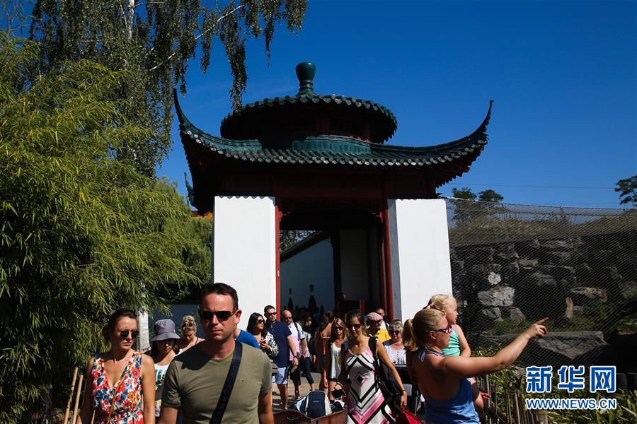 8月24日,在比利时布吕热莱特市,游客参观天堂动物园的“中国园”。新华社记者郑焕松摄