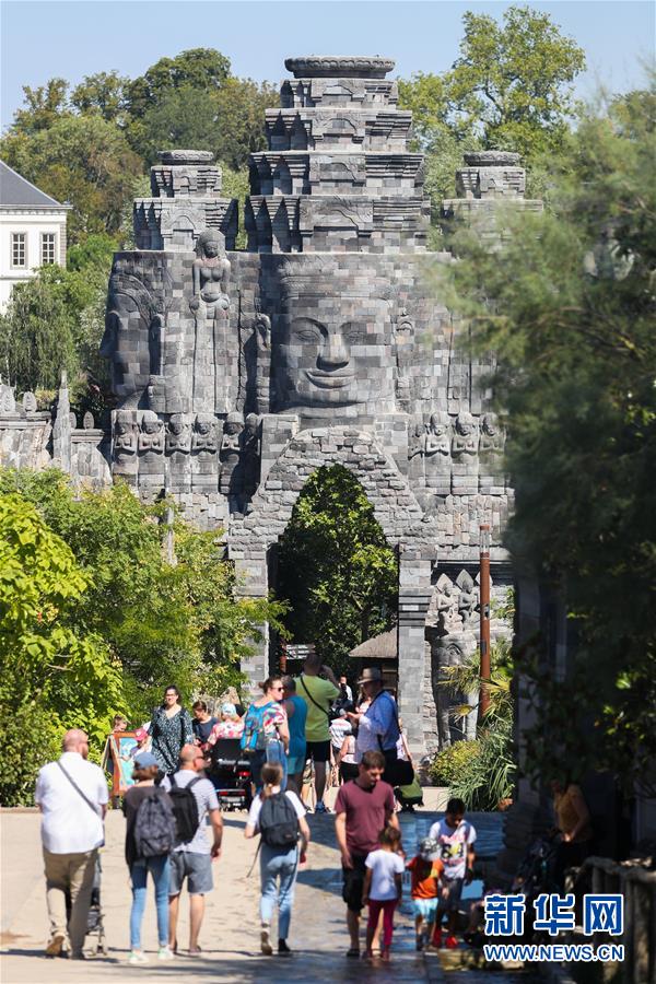 8月24日,在比利时布吕热莱特市,游客在天堂动物园具有东南亚风情的园林区游玩。新华社记者 郑焕松 摄