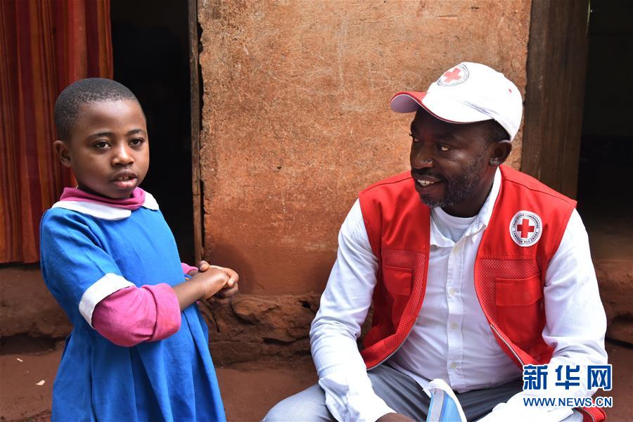 9月2日,在喀麦隆丰班,红十字国际委员会的工作人员(右)和来自喀麦隆英语区的流离失所儿童交流。新华社发(让·皮埃尔·科普索摄)