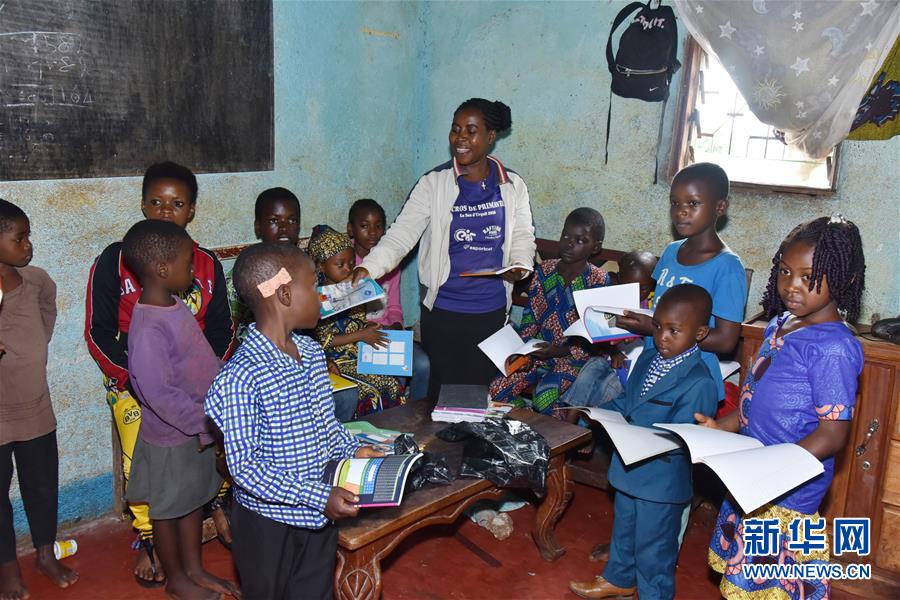 9月2日,在喀麦隆丰班,来自喀麦隆英语区的流离失所儿童领取免费的文具。新华社发(让·皮埃尔·科普索摄)