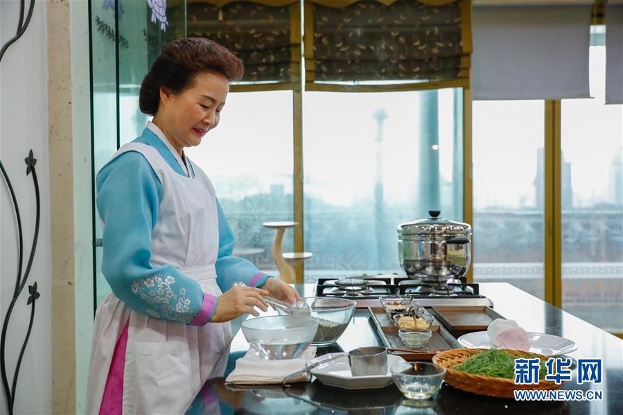 9月10日,在位于韩国首尔的韩国传统饮食研究所,所长尹淑子在准备制作松饼。新华社记者王婧嫱摄