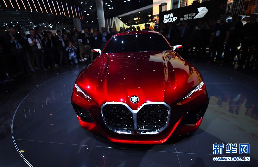 这是9月10日在德国法兰克福拍摄的宝马集团发布的全新4系概念车。 2019年德国法兰克福国际车展10日迎来首个媒体开放日。各大厂商首发新车成为各方关注的焦点。法兰克福国际车展将于12日至22日在德国法兰克福会展中心举行。 新华社记者 逯阳 摄