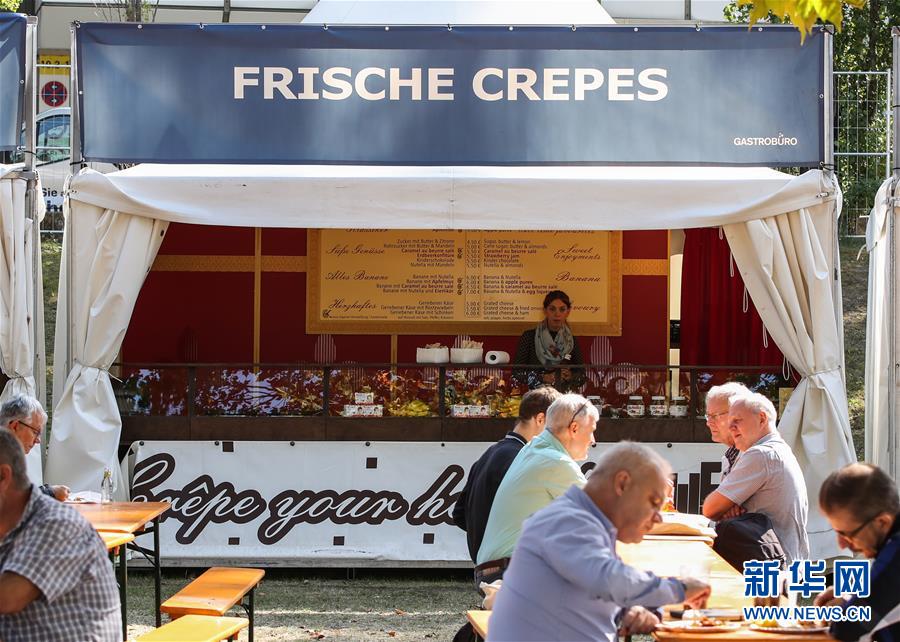 这是9月11日在德国首都柏林的柏林国际消费电子展上拍摄的一个可丽饼摊位。