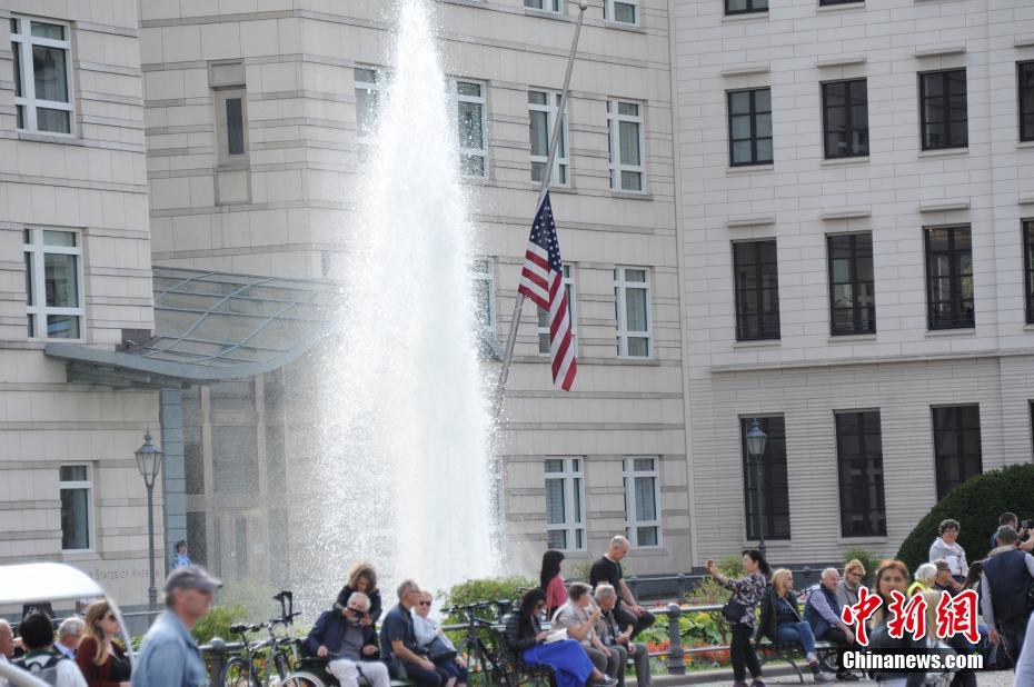 当地时间9月11日,位于柏林市中心巴黎广场的美国驻德国大使馆降下半旗以纪念“9·11”事件18周年。 中新社记者 陈孟统 摄