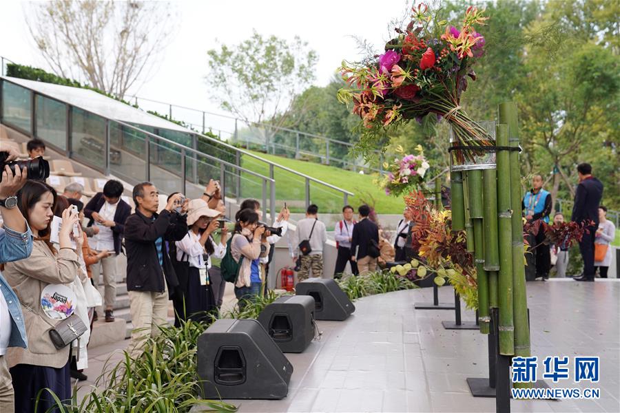 9月12日,观众在“日本国家日”活动上参观花道技艺展示。 当日,2019年中国北京世界园艺博览会“日本国家日”活动在北京世园会园区举行。 新华社记者鞠焕宗摄