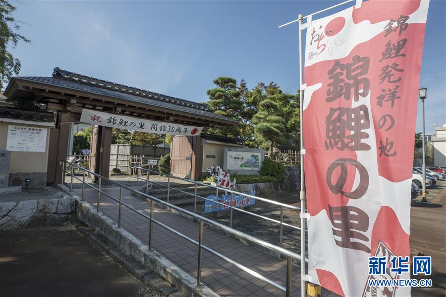 这是9月6日在日本新潟县小千谷市拍摄的“锦鲤之里”入口。 锦鲤颜色鲜艳、花纹各异,在日本被誉为“水中活宝石”。本次在北京世园会上展出的锦鲤由日本新潟县长冈市和小千谷市的养殖场提供。新潟县是日本的锦鲤发祥地和主要养殖区域,小千谷市内设有专门供人欣赏锦鲤的“锦鲤之里”(中文是“锦鲤之乡”的意思)。 9月12日,北京世园会迎来“日本国家日”。 新华社记者 杜潇逸 摄