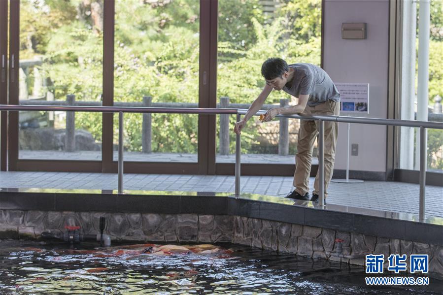 9月6日,在日本新潟县小千谷市,参观者在“锦鲤之里”给锦鲤喂食。 锦鲤颜色鲜艳、花纹各异,在日本被誉为“水中活宝石”。本次在北京世园会上展出的锦鲤由日本新潟县长冈市和小千谷市的养殖场提供。新潟县是日本的锦鲤发祥地和主要养殖区域,小千谷市内设有专门供人欣赏锦鲤的“锦鲤之里”(中文是“锦鲤之乡”的意思)。 9月12日,北京世园会迎来“日本国家日”。 新华社记者 杜潇逸 摄