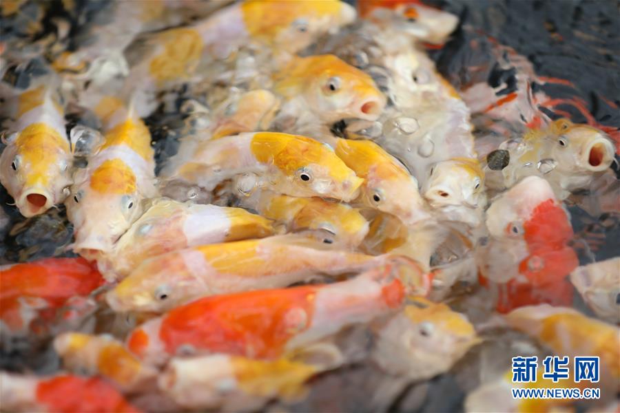 这是9月5日在日本新潟县长冈市锦鲤新潟养殖场拍摄的锦鲤。 锦鲤颜色鲜艳、花纹各异,在日本被誉为“水中活宝石”。本次在北京世园会上展出的锦鲤由日本新潟县长冈市和小千谷市的养殖场提供。新潟县是日本的锦鲤发祥地和主要养殖区域,小千谷市内设有专门供人欣赏锦鲤的“锦鲤之里”(中文是“锦鲤之乡”的意思)。 9月12日,北京世园会迎来“日本国家日”。 新华社记者 杜潇逸 摄