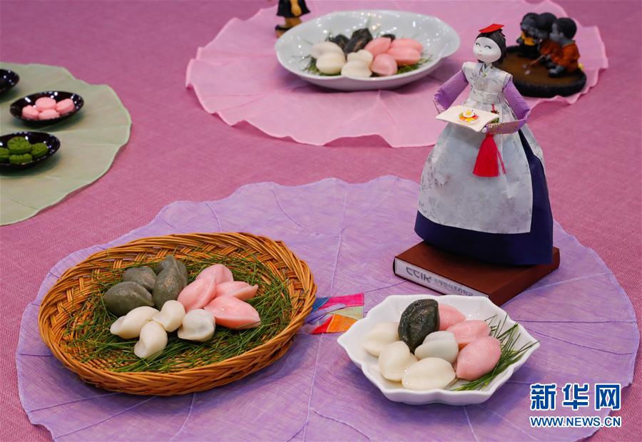 这是在位于韩国首尔的韩国传统饮食研究所拍摄的制作好的松饼(9月10日摄)。在韩国,中秋节被称为“秋夕”,是韩国最重要的传统节日之一。从前在秋夕节的清晨,韩国家家户户都要举行祭祀活动。家庭成员在家中长子的带领下,身着传统服饰,进行献酒、按顺序行叩礼等一系列祭祀活动,并摆放新米、松饼以及各类水果和鱼肉等。祭祀结束后,全家会一起分享祭祀的美食。其中,必不可少的传统点心是松饼。半月形的松饼用米粉做皮,以芝麻、松仁、栗子等为馅,放在铺满松针的蒸屉上蒸熟,象征着收获。在如今的韩国,人们仍保留着秋夕吃松饼的习俗,大多数家庭也秉承着秋夕期间祭祀及扫墓的传统,只不过祭祀仪式逐渐简化,在贡品数量、服装及扫墓时间等方面也更为灵活化。 茶食则是韩国传统糕点——韩果的一种。茶食是用大米、芝麻、栗子等磨成的粉末或松花粉加入蜂蜜搅拌均匀后倒入茶食模具压出形状的点心。茶食因多在喝茶时食用而得名,一般吃茶食的时候都要配上韩国传统的人参茶、五味子茶等。新华社记者王婧嫱摄