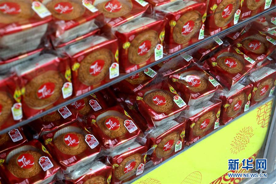 这是9月13日在越南首都河内拍摄的待售的月饼。新华社记者 王迪 摄