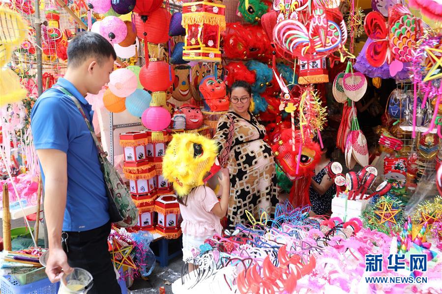 9月13日,在越南首都河内,人们在选购中秋节礼物。新华社记者 王迪 摄